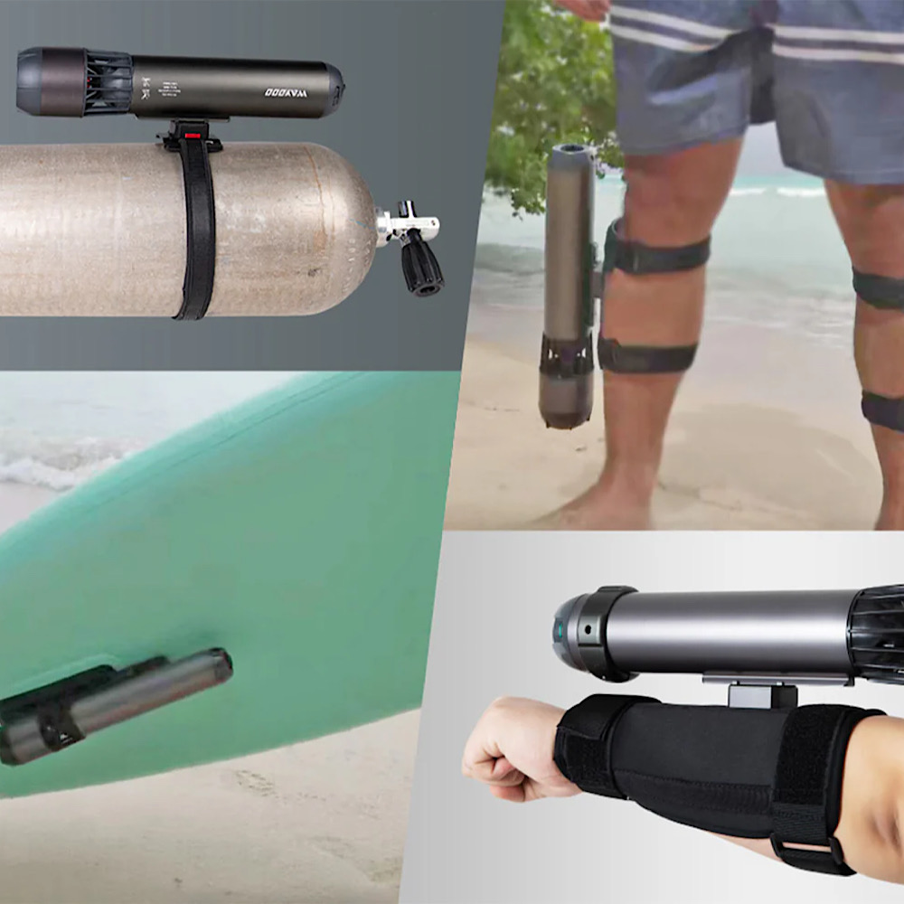 Subnadoのクイックリリースシステムは汎用性が高く、 腕、脚、 サーフボード、 酸素タンク などに取り付けることが可能です。(これらの取り付けアタッチメントはあります。)他にも、アイディア次第で様々な取り付けが可能 となっています。
